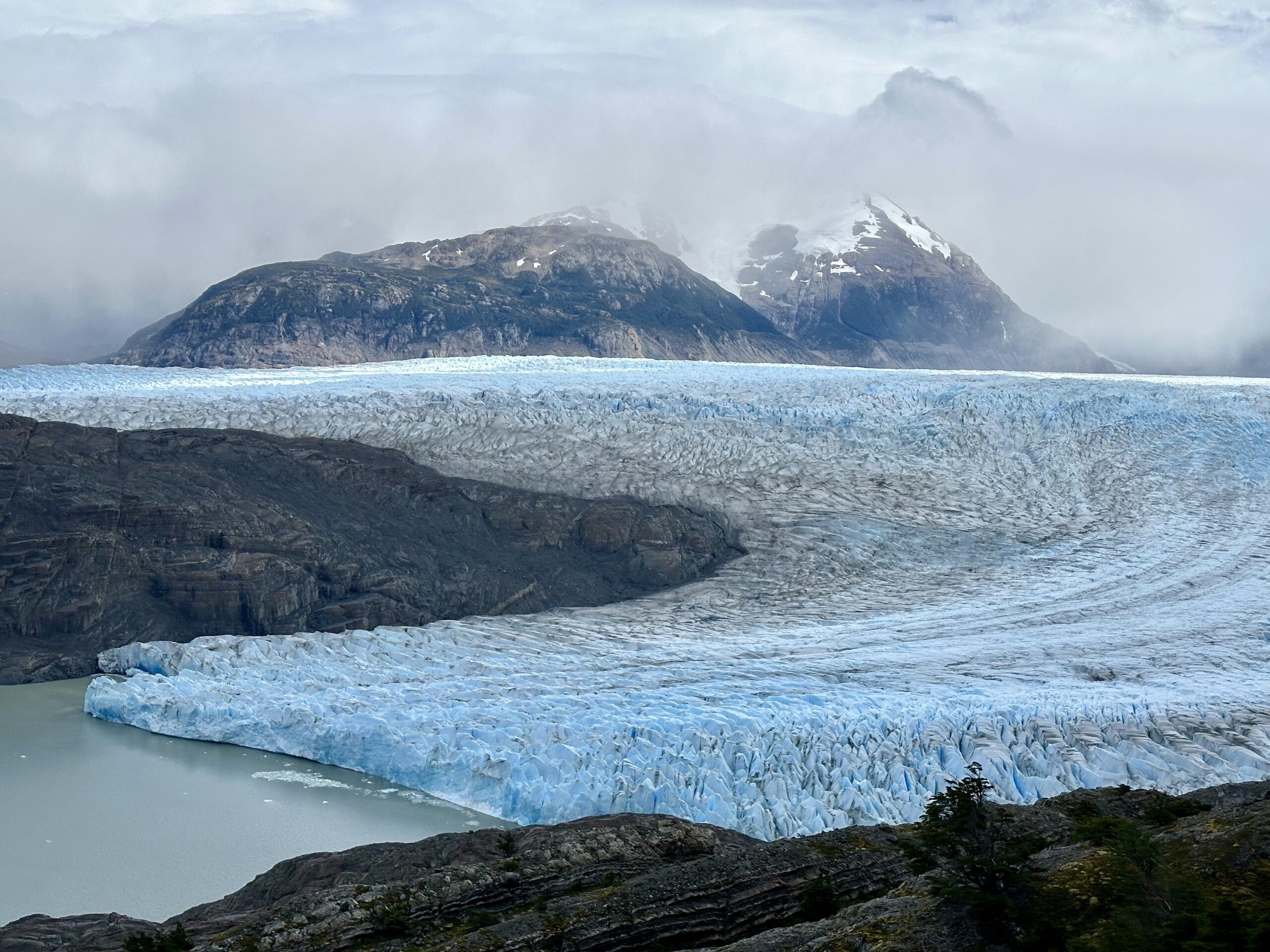 A medida que avanzas, la vista se abre hacia el majestuoso Glaciar Grey, una pared de hielo colosal que cambia constantemente de forma, color y textura. Desde la embarcación podrás ver grietas azul eléctrico, desprendimientos de hielo y la inmensidad del Campo de Hielo Sur, el tercer reservorio de agua dulce más grande del mundo.